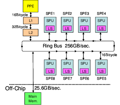 The main idea behind Cell was the division between a main general-purpose core(Power Processor Unit) and several secondary cores for massively parallel processing(Synergistic Processor Units).